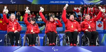 Canadian Paralympic Wheelchair Curling Team Gold Medal Ceremony at the 2026 Paralympic Games in Cortina, Italy on March 14, 2026. (Photo, Canadian Paralympic Committee / Angela Burger)
