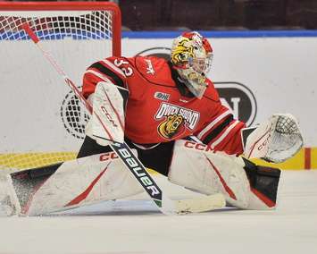 Owen Sound Attack goalie Carter George. (Photo courtesy of Terry Wilson via OHL Images)