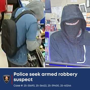 The Windsor Police Service is looking for a man in connection to a number of armed robberies at convenience stores.